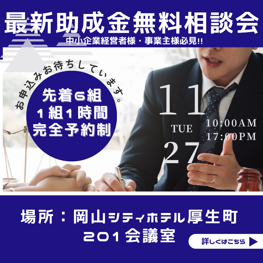 ※1つでも当てはまらない条件がある場合、助成金無料相談対象外となります。