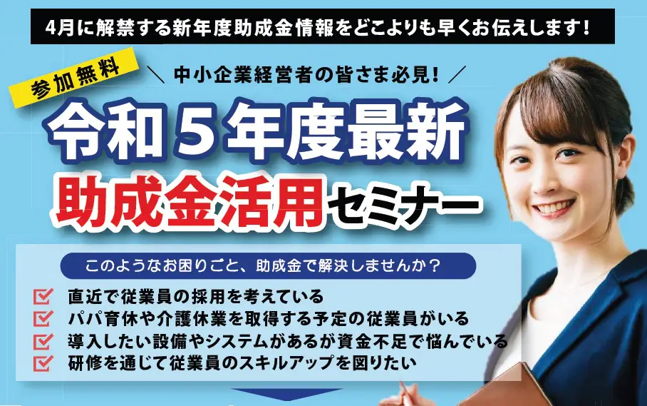 セミナーでは、令和5年度に活用しやすい助成金をご紹介します!