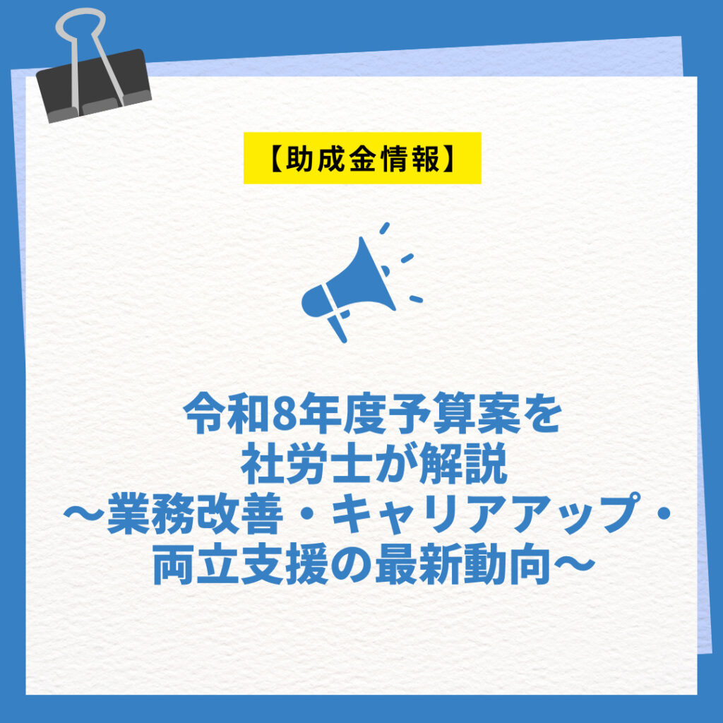 【助成金情報】令和8年度予算案を社労士が解説〜業務改善・キャリアアップ・両立支援の最新動向〜|岡山・倉敷