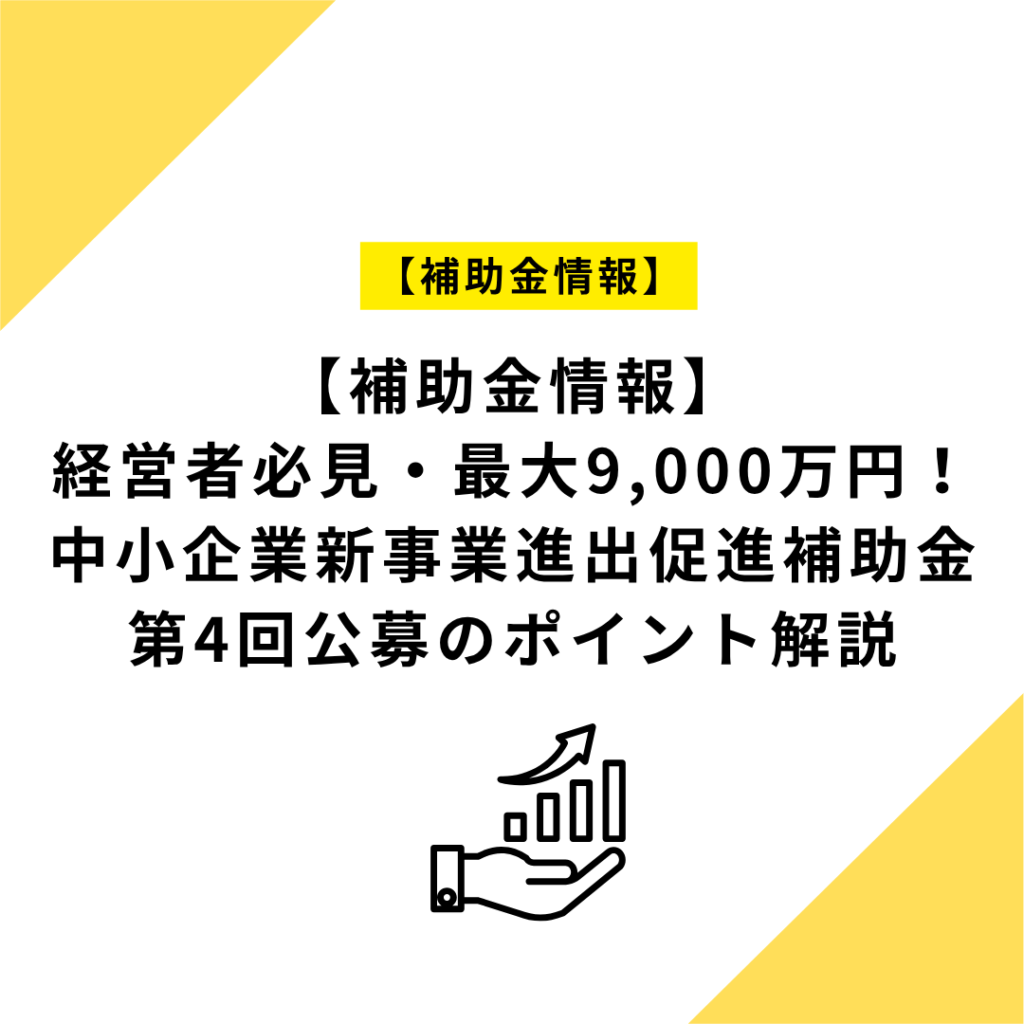 【補助金情報】経営者必見・最大9,000万円!「中小企業新事業進出促進補助金」第4回公募のポイント解説